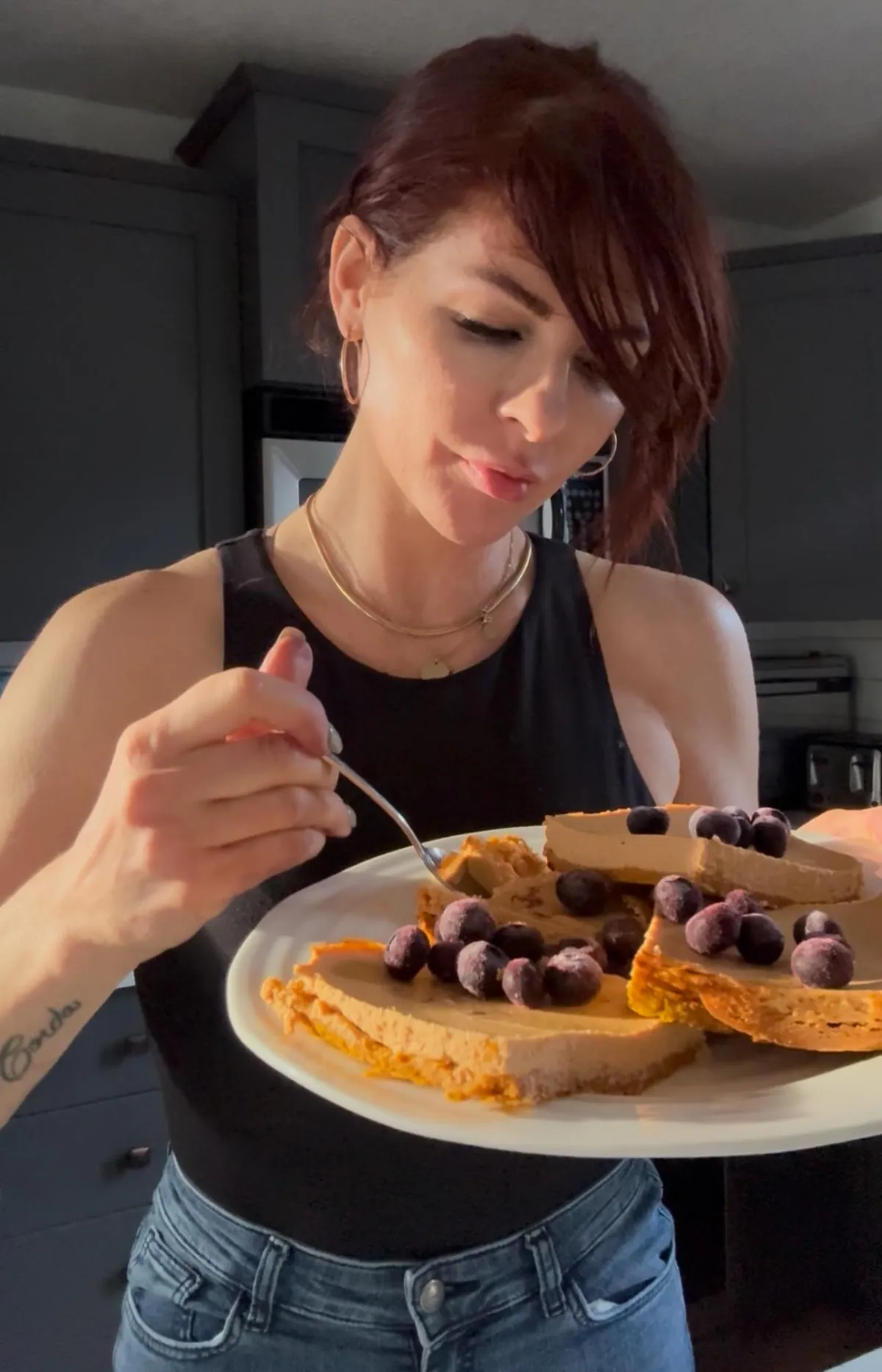 Option to make it High Fat: swap the low fat cream cheese and non fat greek yogurt for whole, and use an egg instead of egg whites (ps. this will add calories, but will be more cheesecakie)
